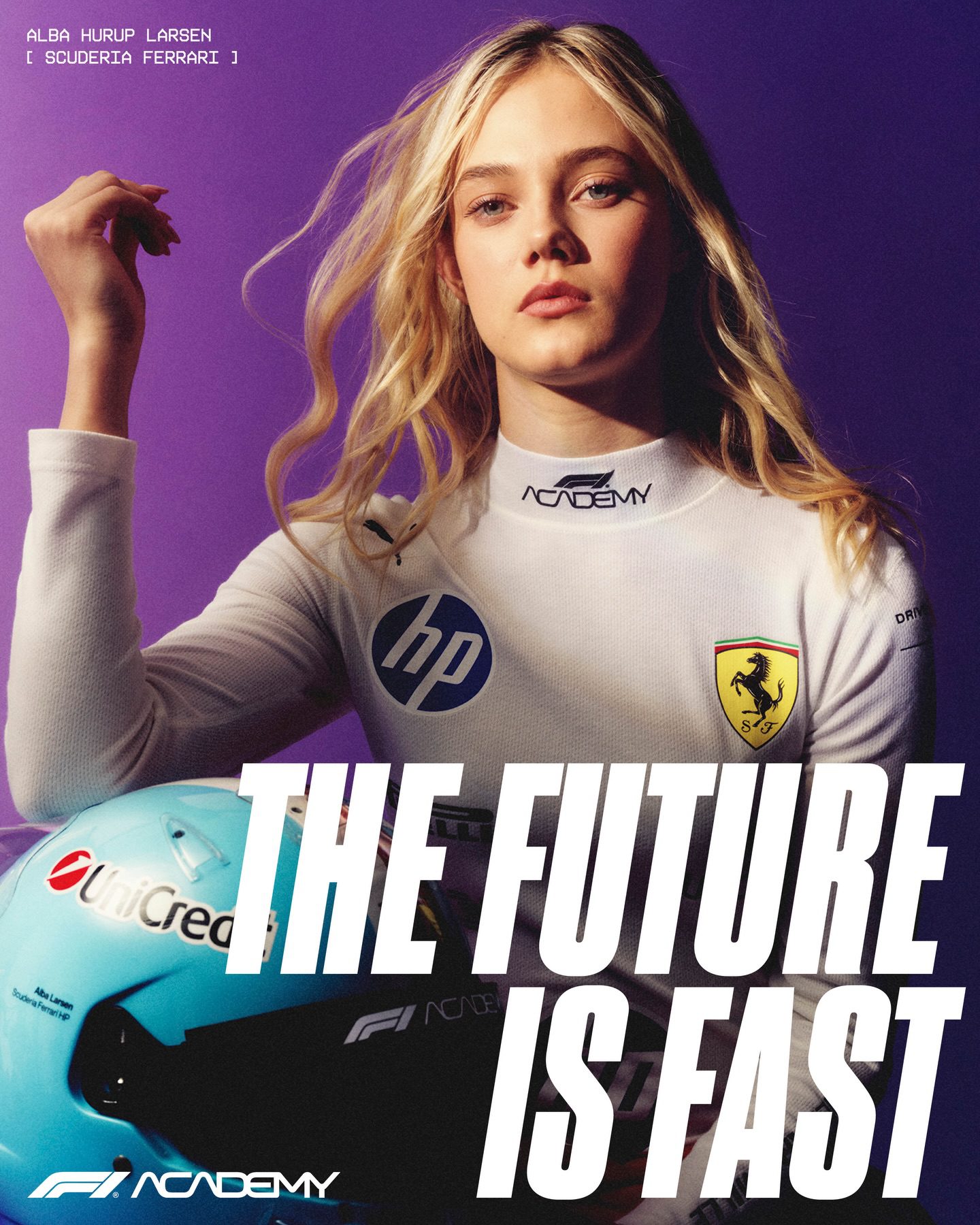 Cette même année, la FIA la repère. La teenager Alba Larsen intègre le programme FIA Girls on Track – Rising Stars, le concours mondial de détection de talents organisé avec Ferrari. « On était chez Ferrari en Italie, se souvient-elle encore dans Vogue. On a été testées en pilotage, en force physique et mentale, dans tout. Je n’avais été dans une voiture de Formule 4 qu’une seule fois avant ça. » Elle gagne quand même. Son manager Lars Hemming Jørgensen résume : « Elle était la plus rapide. Mais ils testent aussi les capacités cognitives, la solidité mentale, comment tu réagis sous pression, ta condition physique… et elle a gagné. Dans un monde où il y a 1,4 milliard de filles de moins de 18 ans, c’est plutôt pas mal. »