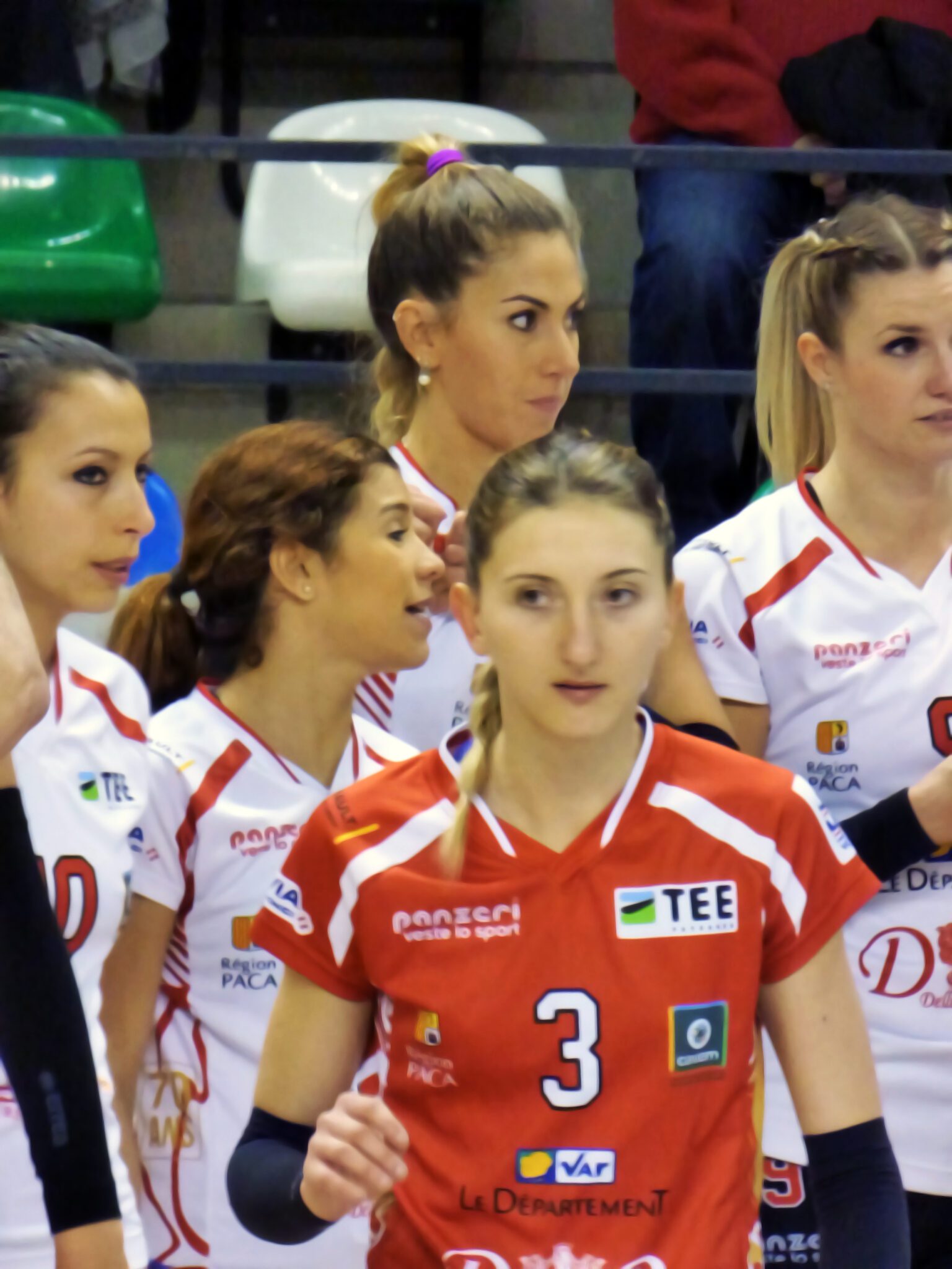 Oui, tout s’est passé comme Riccardo me l’avait dit. Pendant un an, je travaille comme une folle. Giulio devient mon mentor, je rencontre des étrangères exceptionnelles qui vont devenir mes amies, je suis à côté de la maison, on gagne tout et on monte en ProA. Après cela, je pars au Cannet où je signe pour deux ans. À ce moment-là, le club recrute celle qui, pour moi, est l’une des meilleures libéros du monde, Nicole Davis, une Américaine qui a fait les Jeux un million de fois, qui a joué partout dans le monde. Je sais, de fait, que je ne vais pas jouer mais je me dis que je n’aurai plus jamais l’occasion d’évoluer avec une libéro comme elle de ma vie alors je fonce.