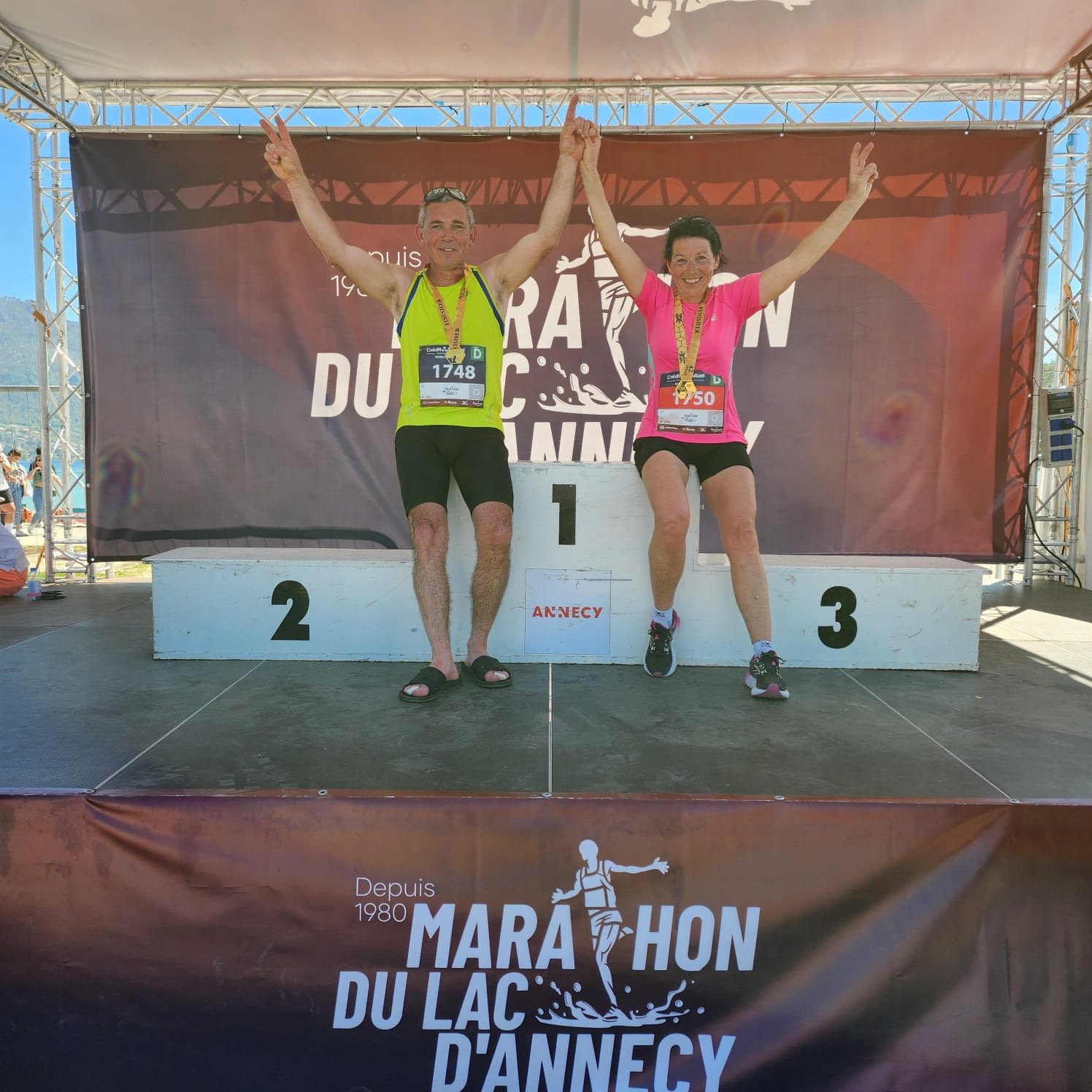 Pour moi, le marathon, c’est vraiment une satisfaction personnelle. Je n’en fais qu’un seul par an -il ne faut pas que ça devienne une drogue non plus – avec mon frère. Le plus souvent, c’est soit Paris, soit Annecy. J’ai fait deux fois le marathon d’Annecy et une fois celui de La Rochelle mais je ne suis jamais allée à l’étranger. Quand je cours, je suis contente, tout simplement. À côté, en plus, je fais plein de petites courses comme les foulées du Gois à Noirmoutier qu’on appelle aussi « la course des As » mais aussi le trail du Bélier à la Clusaz. C’est toujours le dernier week-end d’août, j’en ai fait plus d’une dizaine, et toujours accompagnée de mon frère. Une année, j’ai aussi fait l’Ironman au Sables-d’Olonne avec deux amies. Moi, j’ai fait la course à pied, une autre a fait la natation et la troisième, l’épreuve de vélo. Et puis, là, c’est la troisième année qu’on part faire un trek en Corse au mois de juin, le circuit Mare a Mare.