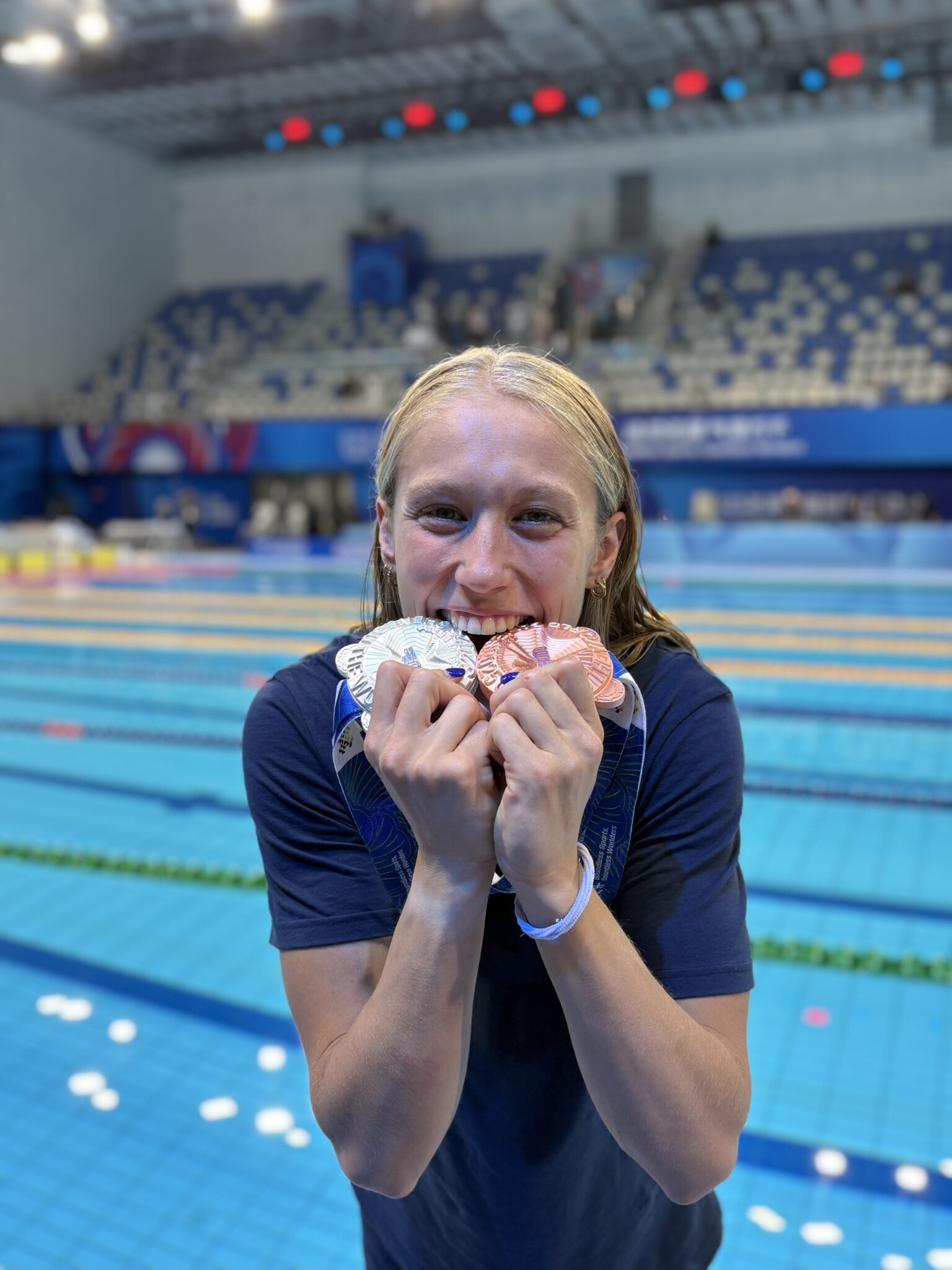 Oui, après avoir passé mon diplôme de STAPS à Aix, j’ai pu intégrer une école de Kiné à Montpellier grâce au sauvetage et à mon statut de sportive de haut niveau, justement. Pendant toute cette période, ça a été assez compliqué de m’entraîner quotidiennement comme j’en avais l’habitude depuis plusieurs années. Je suis repassée à un entraînement par jour. C’est en 2024 que j’ai été diplômée et, l’année dernière, en 2025, j’ai rejoint mon club de nage avec palmes à La Ciotat. L’année a été difficile suite à des soucis personnels, j’ai donc eu besoin d’alléger en termes d’entraînements après un rythme très soutenu pendant quatre ans. Je me suis un peu absentée du bord du bassin. Mais j’ai quand même ramené cette médaille de bronze des World Games. Suite à tout ça, j’ai décidé de rester sur La Ciotat. On avait planifié toute l’année avec mon entraîneur. L’objectif ? Les championnats du monde en juin. Après l’année où j’avais un peu déserté les bassins, j’avais perdu beaucoup de force. Donc il m’a surtout fait travailler physiquement pendant quatre mois. Je suis moins allée à l’eau. J’ai vraiment travaillé dur, j’ai même commencé les Hyrox. Mais quand on a voulu reprendre l’entraînement en bassin, il y a eu un accident dans notre piscine à La Ciotat, elle a été fermée pour un temps. Suite à cet incident, mes plans ont été chamboulés. Depuis, je fais des séjours en Normandie avec un autre entraîneur. J’ai repris les entraînements biquotidiens depuis janvier. Mon rythme, c’est 8 entraînements dans l’eau et 3 séances de musculation.