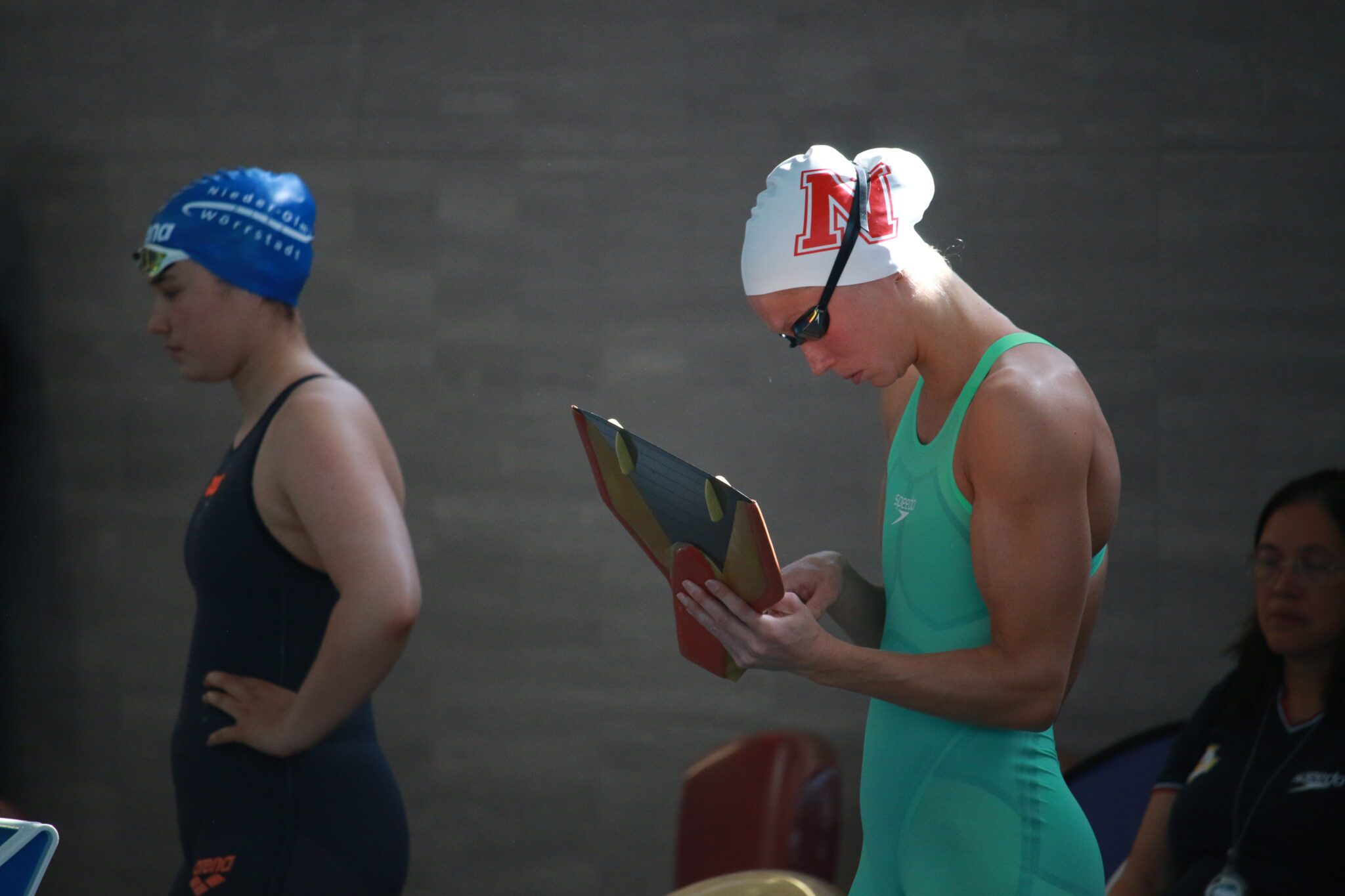 Est-ce que tu as un petit rituel avant d’entrer dans l’eau pour une compétition ou, peut-être, une tenue particulière qui est importante pour toi ?