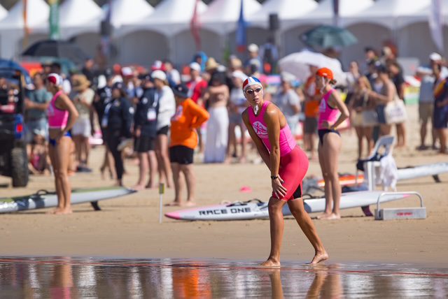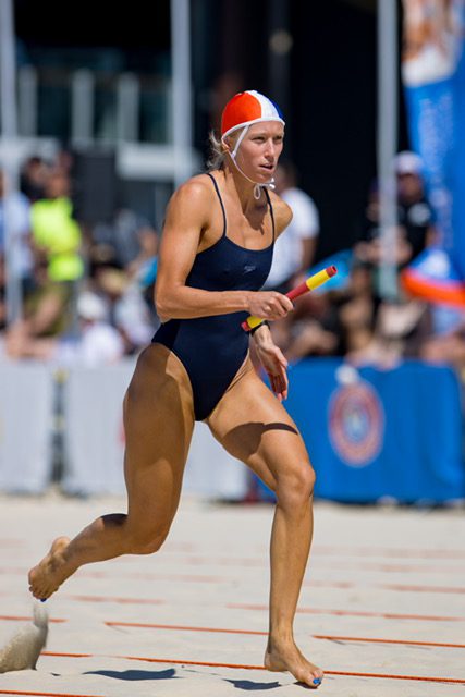 Oui, en mer, le sauvetage côtier, il y a des épreuves sur sable, donc il y a du sprint sur sable : du sprint de 90 mètres ou des épreuves à l’Australienne sur 10 mètres où on est allongé à plat ventre, où on doit se retourner et venir chercher un bâton, ça s’appelle du flag. Après, dans l’eau, il y a des épreuves de kayak, c’est du surfski, c’est un kayak avec des pédales et une double pagaie ; du paddle board à savoir une planche de paddle qui ressemble aux planches avec lesquelles on fait du secourisme mais qui sont en résine epoxy comme les planches de surf, de manière à aller beaucoup plus vite. On peut ramer à genoux ou à plat ventre. Après, il y a des épreuves de nage en mer comme des épreuves d’eau libre, mais c’est assez court, les distances font à peu près 400 mètres. Et il y a une épreuve, l’épreuve reine côté côtier, qui est l’Ocean Man et l’Ocean Woman. C’est ce qui sera peut-être aux Jeux Olympiques si le sauvetage est aux JO de Brisbane. C’est un mélange de ces trois épreuves où il y a nage, planche et kayak. L’ordre est tiré au sort à chaque compétition et toutes les transitions entre les supports se font en course à pied sur le sable. C’est assez impressionnant et les épreuves durent à peu près un quart d’heure. En Australie, il y a un circuit pro, parce que c’est le pays phare du sauvetage. Il y a une ampleur assez impressionnante avec de grosses sommes d’argent en jeu. Enfin, il y a plein d’épreuves de relais par équipe. C’est vraiment rigolo de faire une activité sportive qui a du sens parce qu’on s’entraîne à sortir des gens le plus vite possible, en fait.