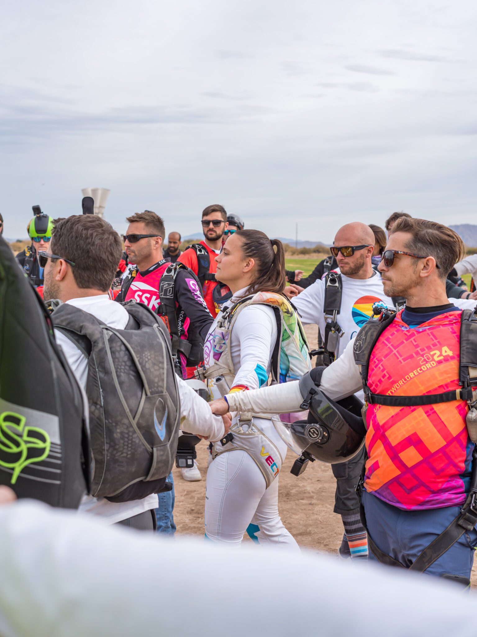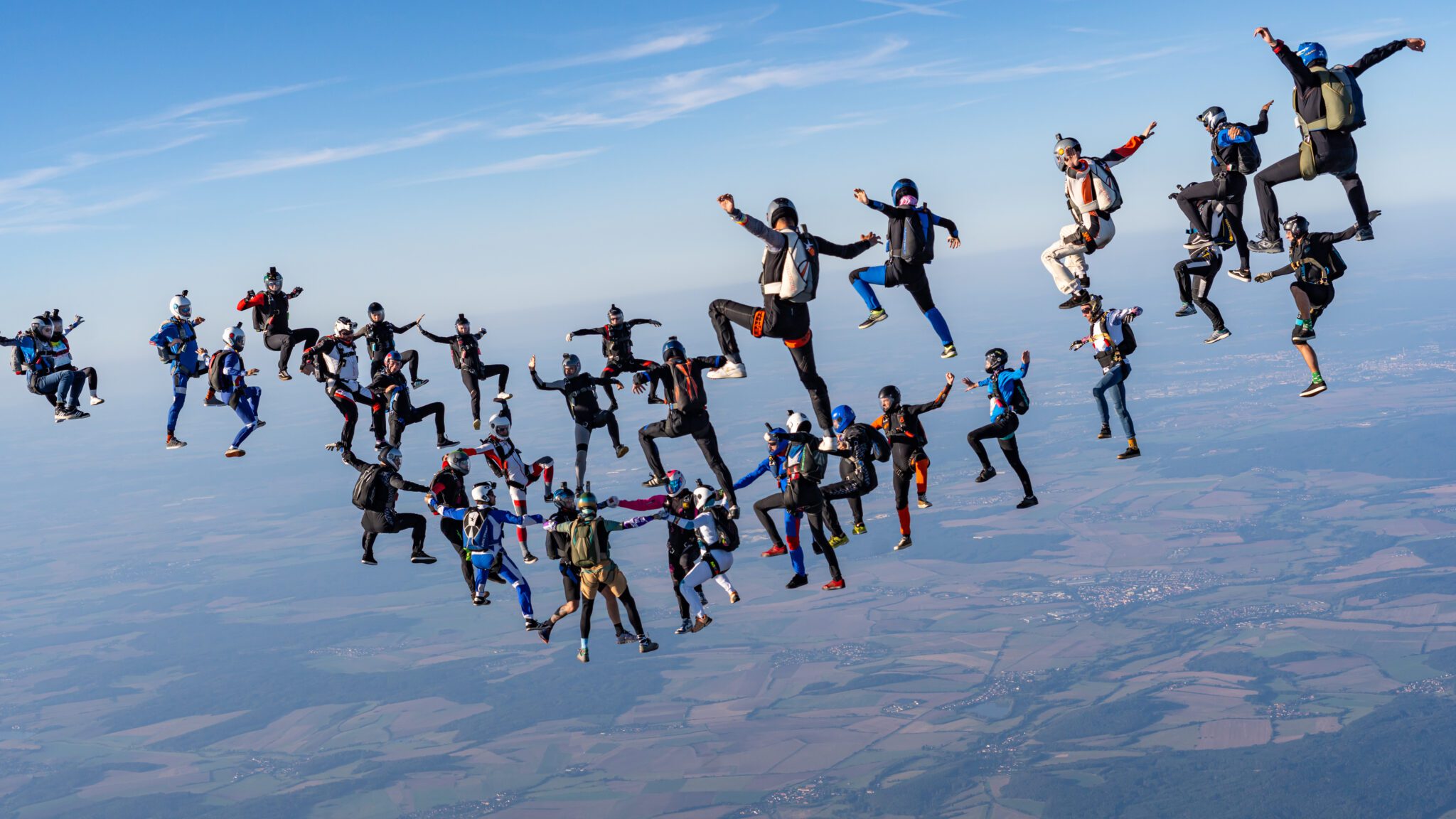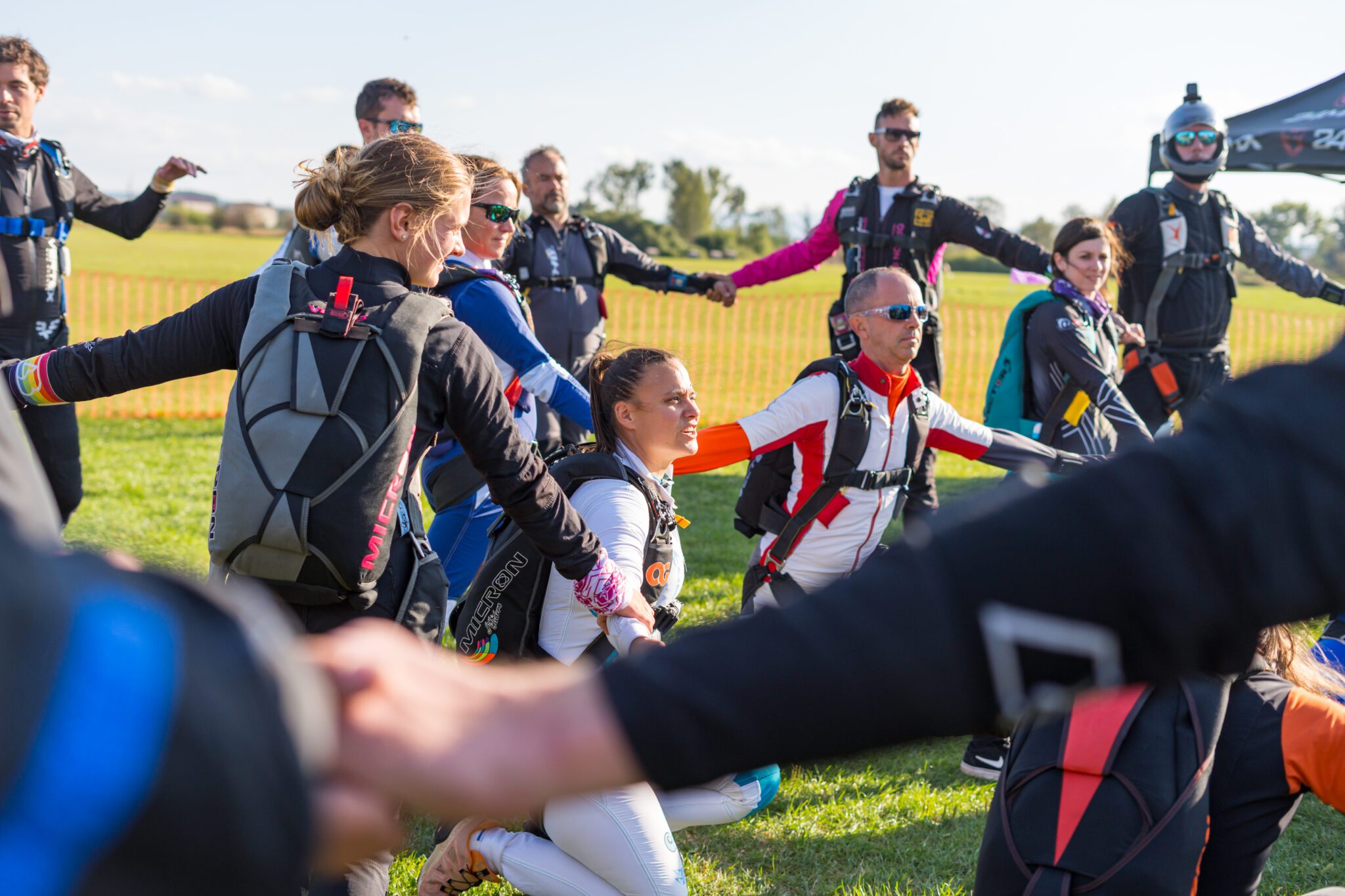 Depuis dix ans, tu es la cheffe d’orchestre de records mondiaux, mixtes ou féminins, le dernier en date étant celui réalisé le 30 novembre 2024 : un saut « tête en haut » en grande formation synchronisée avec un collectif de 96 parachutistes hommes et femmes. Comment on réalise un tel exploit ?