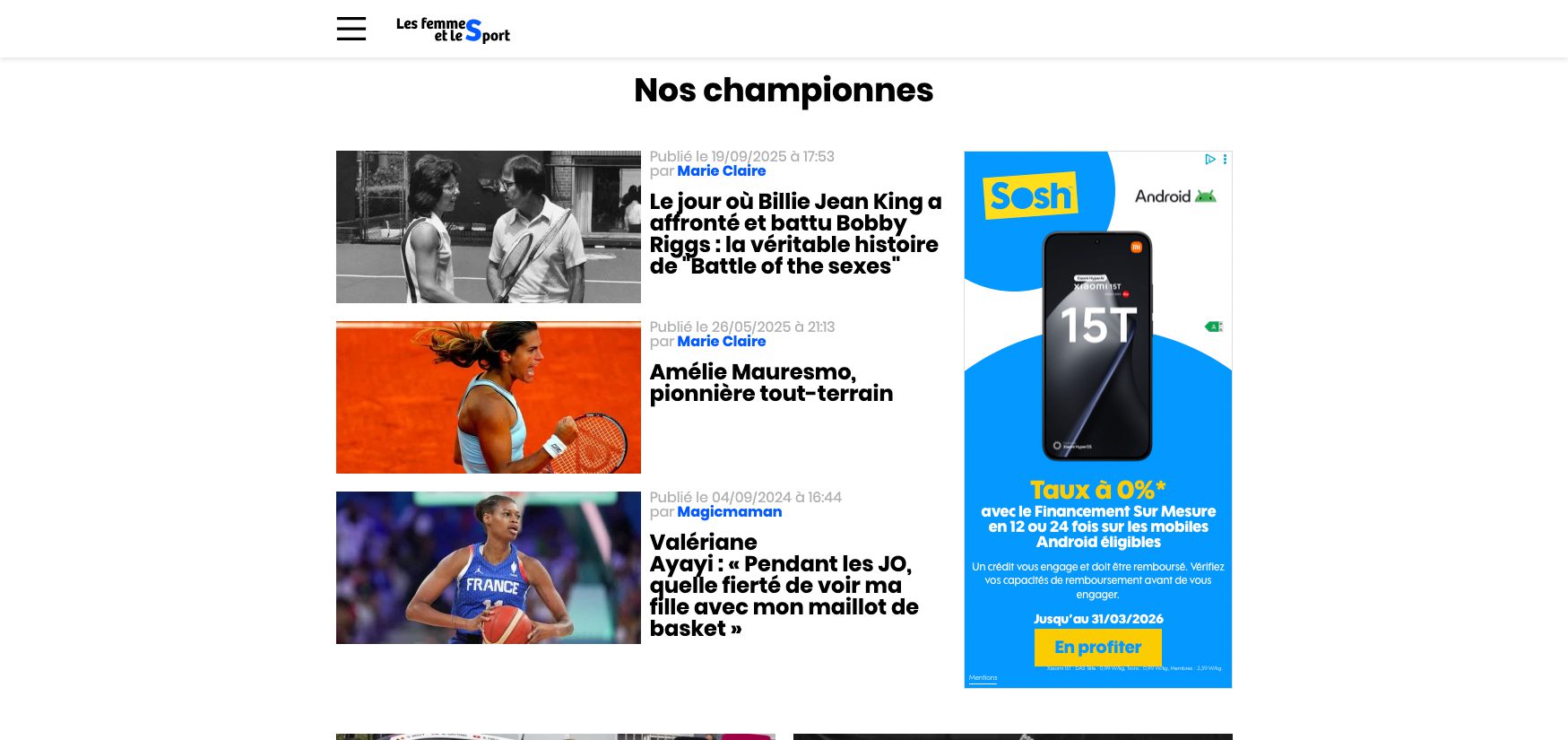 ✓ Vingtaine de contenus produits (portraits et sagas de championnes)