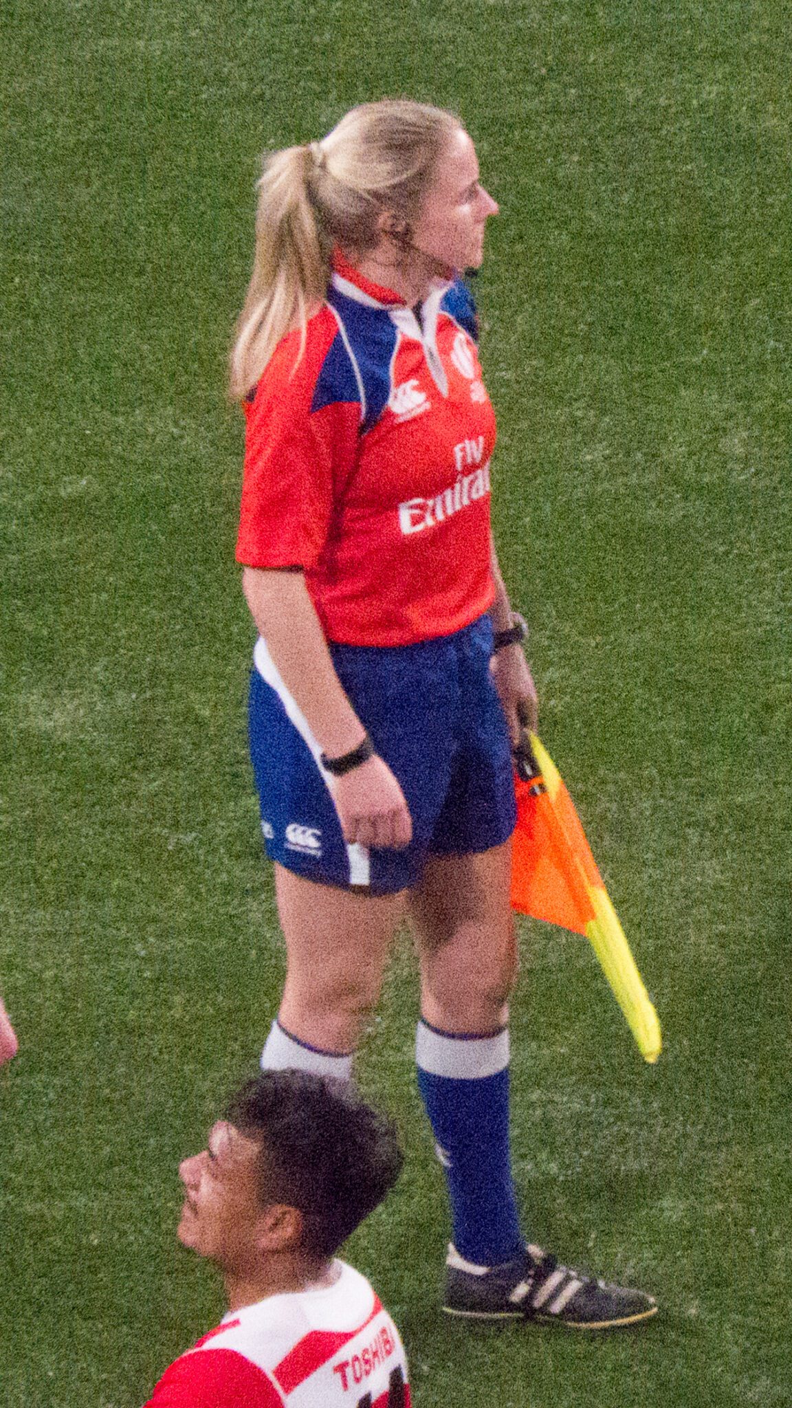 En 2020, elle marque l’Histoire une fois de plus en devenant la première femme à exercer le rôle d’arbitre vidéo (TMO) dans une grande compétition internationale masculine, lors de l’Autumn Nations Cup. Puis, après une pause pour la naissance de son fils Alfie, elle revient en 2022. Et remet ça. En 2023, lors de la Coupe du monde masculine en France, elle est sélectionnée comme arbitre vidéo et supervise cinq matchs de la phase de poules. Première femme à officier dans un Mondial masculin. Encore.