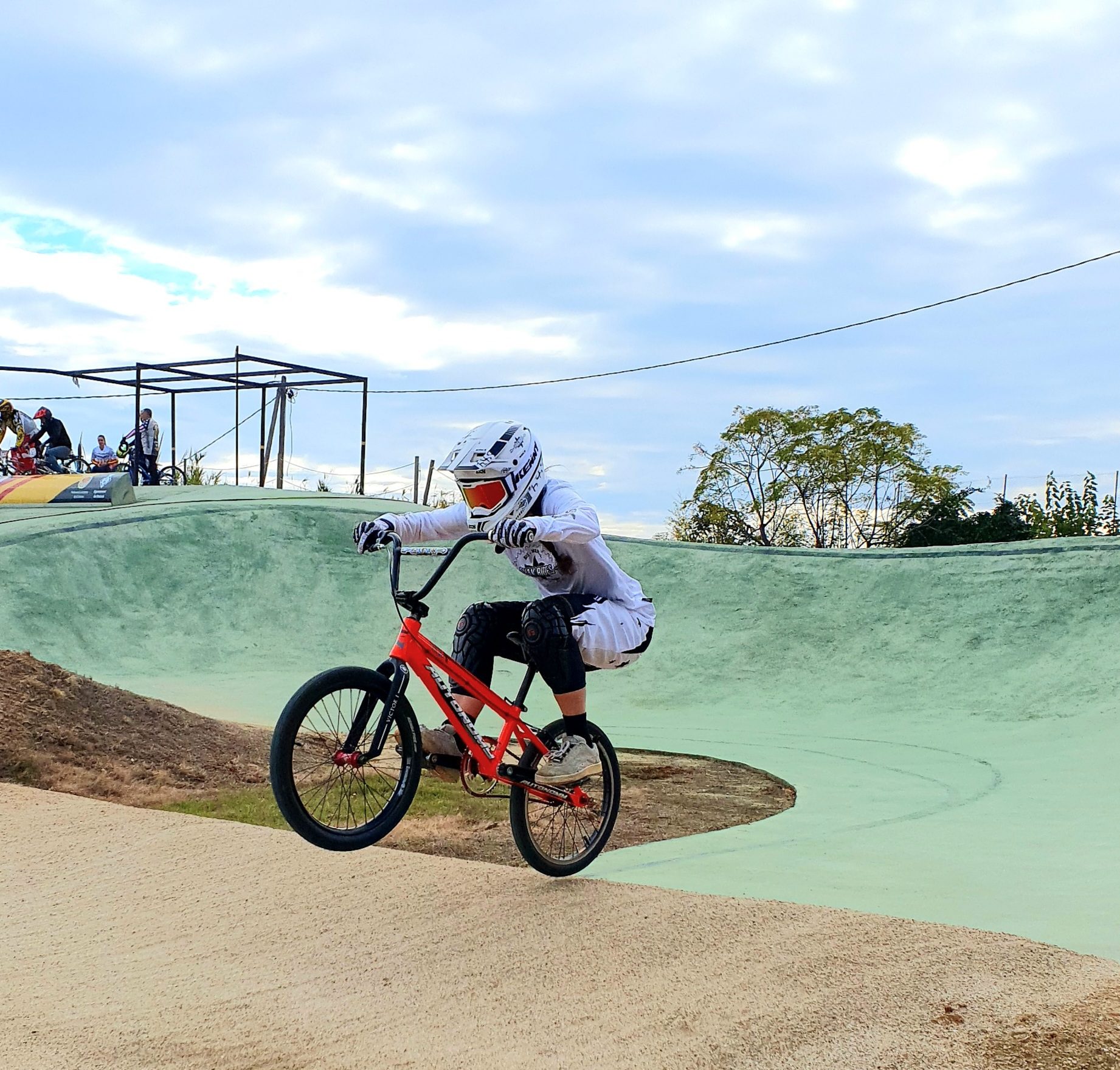 Je ne suis pas toute seule. J’ai créé cette association de support – pour les pilotes féminines uniquement – avec un ancien pilote, c’est donc un encadrement mixte. Selon les années, on coache 6 à 9 pilotes. Via cette équipe, l’idée est de promouvoir la pratique sportive des femmes en les aidant sur les plans humains, techniques et matériels. Elles participent à des compétitions régionales, nationales et internationales. On les aide sur plusieurs plans comme trouver les sponsors matériels pour qu’elles aient des remises sur le vélo, les pièces et accessoires, on leur fourni tenues, plaques, etc. En économisant ainsi, ça leur permet d’avoir un report d’argent pour se rendre sur une compétition, un stage ou autre. On communique aussi sur elles, de manière individuelle ou collective, pour les mettre en valeur, qu’elles se sentent bien, qu’elles se sentent reconnues et qu’elles se mobilisent entre elles. On essaie de créer un espace de cohésion : on a un fil WhatsApp collectif sur lequel on échange pour les retours sur les compétitions, les analyses vidéos. C’est aussi, d’une certaine manière, un groupe de soutien. Et quand on peut, on leur propose un stage. Mais beaucoup de pistes sont payantes aujourd’hui, les installations sportives coûtent de plus en plus chères. On s’est refusé, jusqu’à présent, à demander des subventions publiques pour garder une parole complètement libre et indépendante. Mais ce n’est pas simple de trouver des partenaires privés. On a cependant quelques soutiens comme un distributeur de vélos français.
