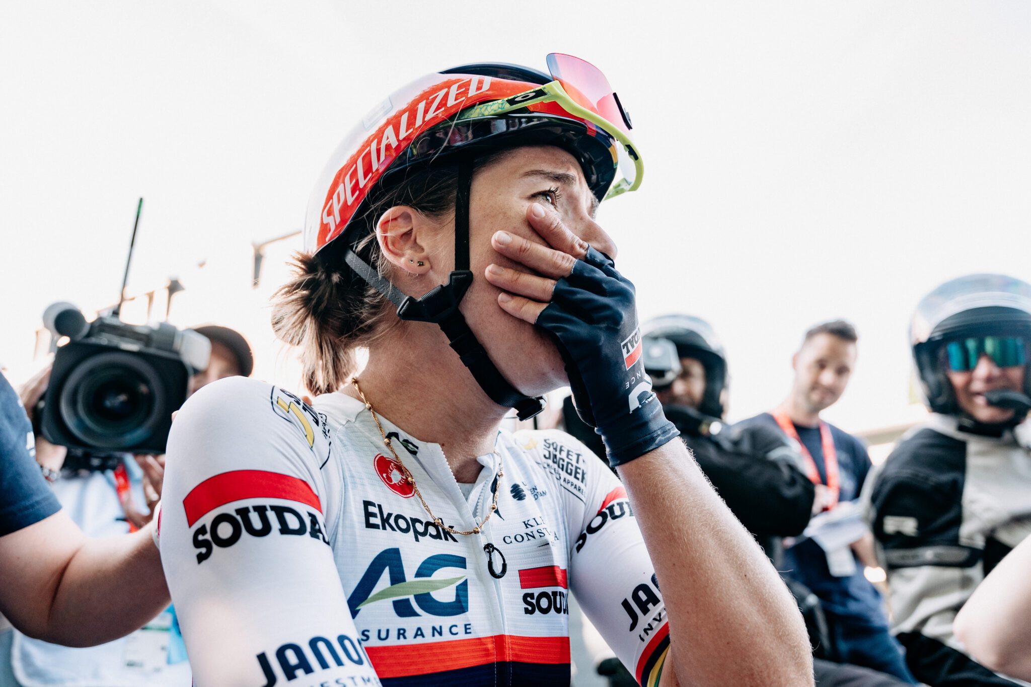Puis, viendra le temps de la révélation sur le Tour de France Femmes 2025. Après un solide podium sur la premièreʳᵉ étape, elle confirme sur la suivante : troisième place à Quimper, et grâce aux bonifications, elle s’empare du maillot jaune, reléguant la queen Marianne Vos en deuxième position au classement général. Une ascension fulgurante et historique. Enfin, lors de la cinquièmeᵉ étape, entre le Futuroscope et Guéret, elle renforce son statut en victoire dans la plus longue journée de la course (165 km), sprintant au sommet après les difficultés du Massif Central et décrochant à nouveau le maillot jaune en leader du classement général. Et de lever les bras (de nouveau) devant Demi Vollering !