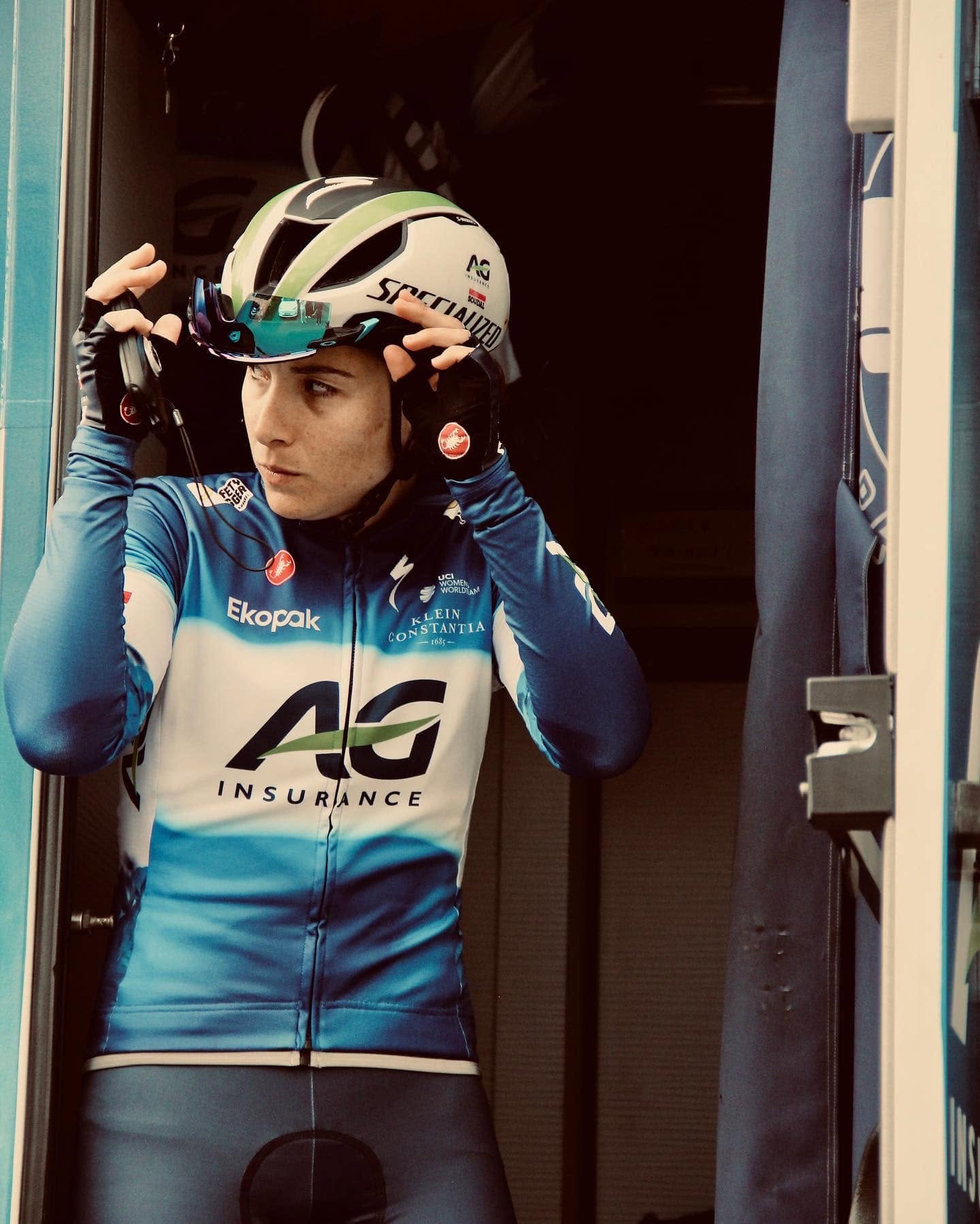 Née en 1996 à Curepipe, à l’île Maurice, d’un père mauricien et d’une mère écossaise, la jeune Kim débute le cyclisme par le VTT dès 12 ans. Elle surmonte la malaria, des débuts difficiles loin des terrains européens, et connaît la désillusion à 18 ans : fatigue mentale, manque de soutien financier, quasi-abandon de sa carrière sportive. Rien ne semble aller dans le bon sens et elle pense sérieusement à lâcher le guidon. Mais après une période de pause salvatrice et un retour réussi aux compétitions africaines de VTT, Kim Le Court -elle ajoutera le nom de Pienaar après son mariage avec son conjoint Ian- reprend courage et contacte elle-même des équipes WorldTour. Vous connaissez le dicton : on n’est jamais mieux servi que par soi-même et la voilà recrutée par AG Insurance–Soudal en 2024.