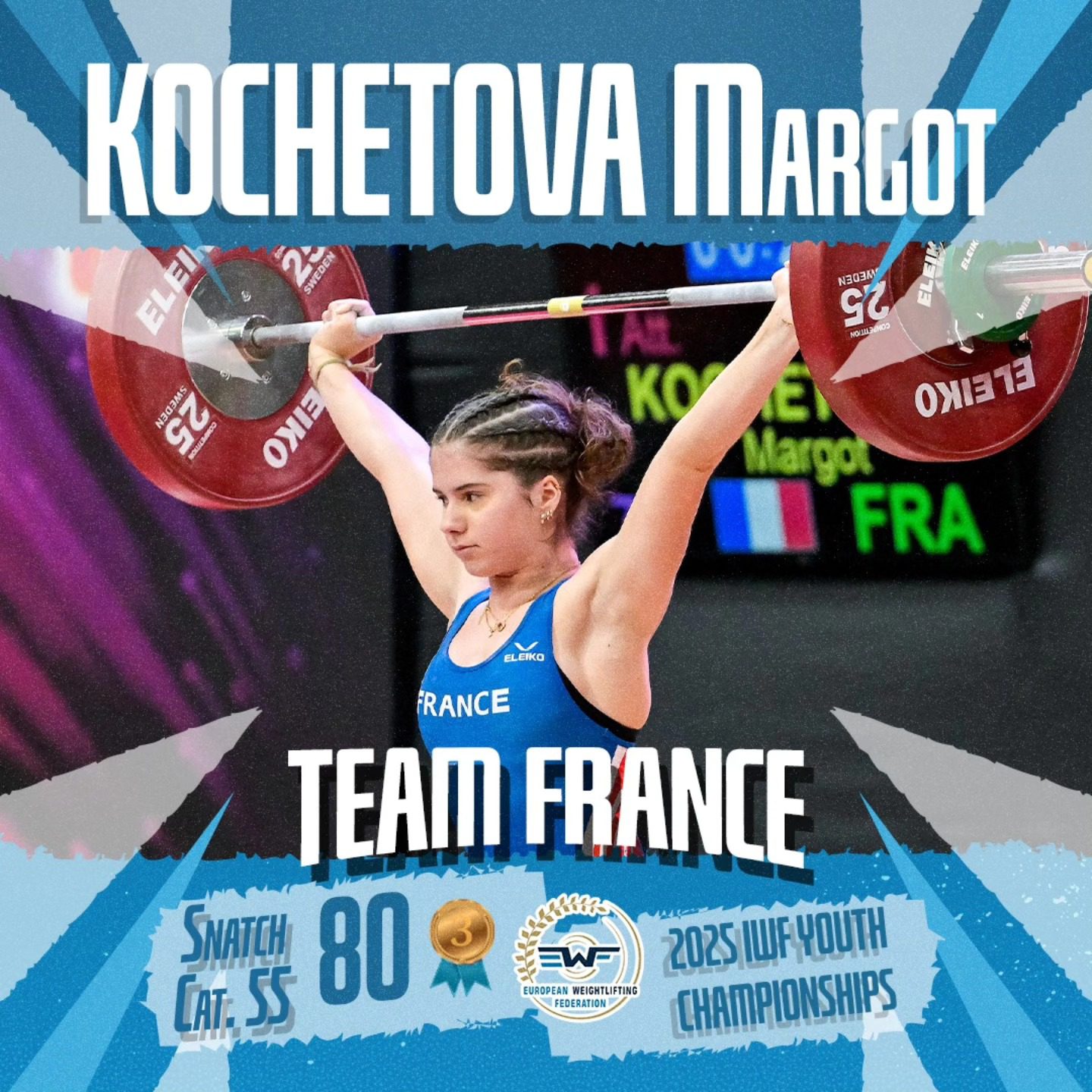 En 2024, c’est la consécration. Tu deviens championne d’Europe 2024 chez les moins de 17 ans, avec 75kg à l’arraché et 89kg à l’épaulé-jeté pour seulement 49kg de poids de corps.