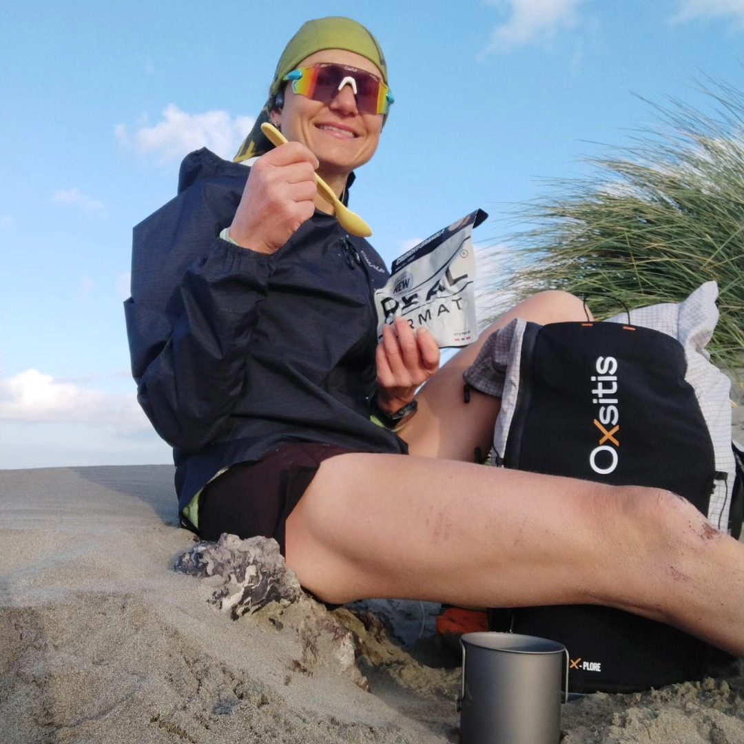 Comme je m’entraîne tout seule, j’ai tendance à trop en faire mais en tout cas je peux adapter en fonction de comment je me sens et je m’entraîne à l’heure que je veux. Ce qui est sûr, c’est que j’ai du mal à me trouver des journées de repos, ce que je ne conseille pas du tout à mes athlètes, d’ailleurs, je suis un mauvais exemple ! Donc, oui, je m’entraîne énormément, entre 20 et 35 heures par semaine – ça c’est quand je suis en période de charge. Je ne fais pas que courir, je fais énormément de vélo, avec des amis parfois, je me prends le pique-nique aussi, je me fais plaisir dans ces séances de sport. Je fais un peu de natation beaucoup de randonnée, un peu de musculation, du ski et du ski de rando l’hiver.