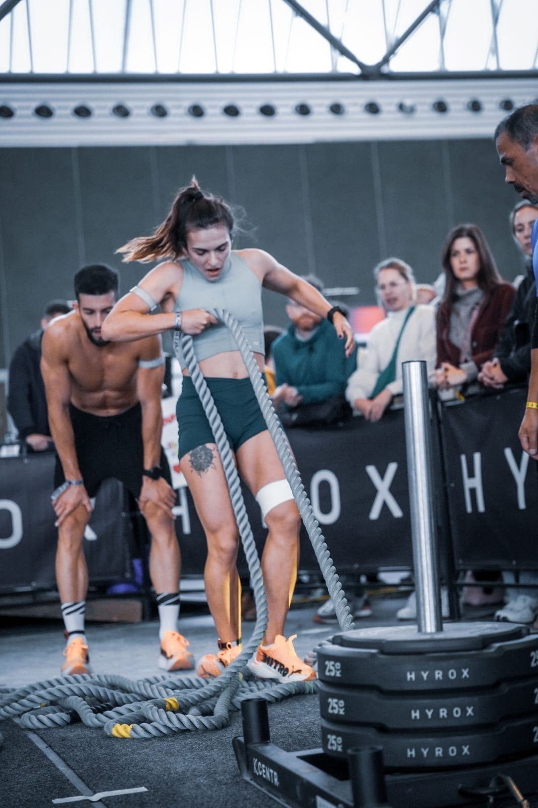 L’Hyrox, c’est une course de fitness qui mêle course à pied et exercices de fitness dits fonctionnels. En gros, tout le monde peut être capable de le faire. Alors, avec plus ou moins de difficultés, évidemment, il faut être quand même un petit peu sportif et en bonne santé, mais vraiment, eux, ils vendent, ils prônent des exos qui sont capables d’être faits par tout le monde. A contrario du CrossFit, où tu as des gestes d’haltérophilie compliqués et très techniques. Alors que tout sportif peut se frotter à l’Hyrox. Avec mon conjoint, on y est depuis une toute petite année en double mixte, ça va vite, c’est chouette. C’est une discipline qui correspond bien à nos qualités et, cette année, après quelques semaines d’entraînement, on est 3e aux Europe et 6e aux Monde. Pas mal pour une première année.
