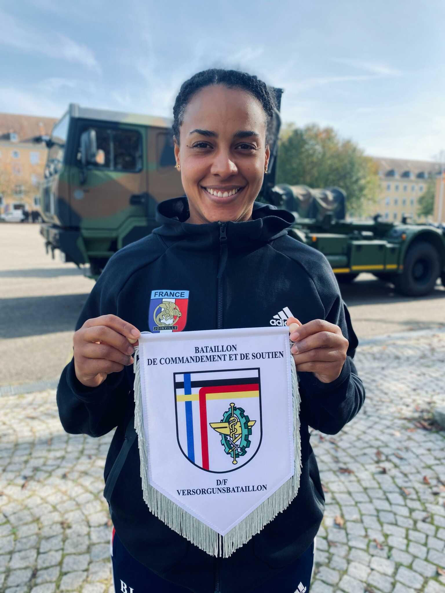 J’apparente un peu cette mission à un contrat d’image. Moi, je suis marraine du bataillon franco-allemand (BCS-BFA) du côté de l’Alsace. C’est une fierté de faire partie de l’Armée car, depuis toute petite, j’ai toujours été attirée par le côté militaire. J’ai même hésité à m’engager à un moment. Ce contrat me permet de réaliser mon rêve : être dans l’armée et être payée à faire mon sport. On est sur des contrats de deux ans – ça allait jusqu’en octobre 2025 pour moi – mais je viens tout juste d’apprendre que j’avais été renouvelée jusqu’à octobre 2026. C’est un grand soulagement. Après les Jeux 2026, si je n’ai pas fait un résultat probant, ils seront totalement en droit de me dire qu’ils ne renouvellent pas mon contrat.